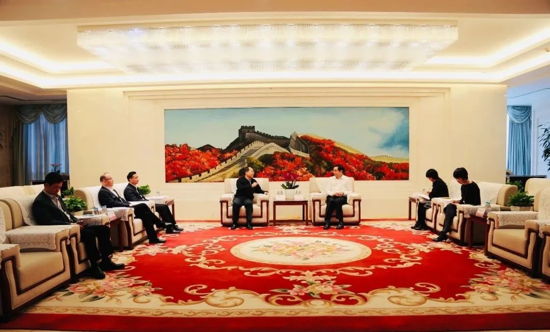 10月14日,51吃瓜 党委书记、董事长周育先在集团总部会见了台州市委书记李跃旗一行。集团董事会秘书兼总经理助理光照宇,台州市委常委、市委秘书长周凌翔出席会见座谈。