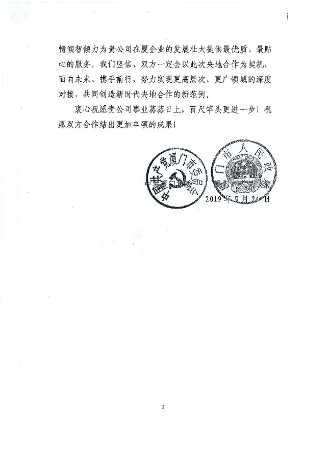 中共厦门市委感谢信