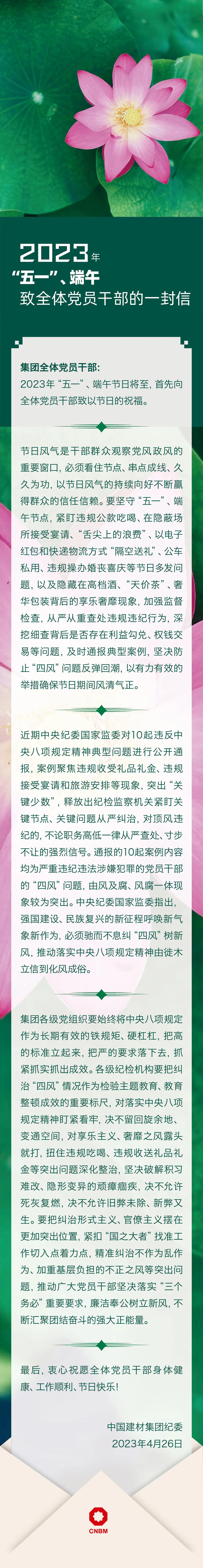 2023年“五一”、端午致全体党员干部的一封信