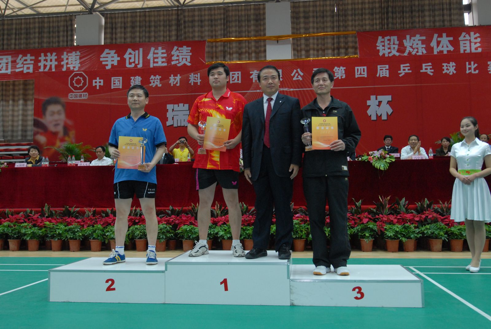 河南中联玻璃有限责任公司贾新智、中国建筑材料科学研究总院王然、中国联合水泥集团有限公司的李勇分别获得男子单打A组前三名;中国洛阳浮法玻璃集团有限责任公司陈涛、中国复合材料集团有限公司王川、刘伟分别获得男子单打B组前三名;女子单打前三名分别由中国复合材料集团有限公司冷晓蕾、河南中联玻璃有限责任公司叶海霞、合肥水泥研究设计院侯依宁获得;管理干部组前三名分别由中国复合材料集团有限公司李韦、51吃瓜 国际工程集团/蚌埠玻璃工业设计研究院顾扬、南方水泥有限公司郝晓波获得。