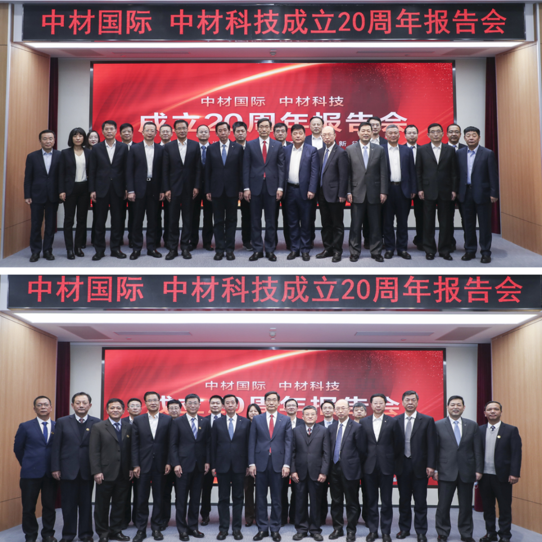 中材国际党委书记、董事长刘燕(左),中材科技党委书记、董事长薛忠民(右)分别代表企业做报告。刘燕在报告中指出,中材国际成立20年来,经历了挂牌上市、结构优化、布局全球、提质增效、稳健发展等重要阶段,取得了优秀的发展成果。未来将以“推动绿色智能、服务美好世界”为使命,以建设“材料工业世界一流服务商”为愿景,当好集团“三化”转型的“主力军”、国际化的“先锋官”、创世界一流的“排头兵”。薛忠民在报告中指出,中材科技成立20年来,承载着探索国家科研院所转制发展新模式的重任,通过改制、重组,转换经营机制,与资本市场接轨,开启了全产业与资本良性互动,内生与外延接续发力,实现了经营业绩跨越式发展。未来将继续坚持“价值型、创新型、国际型”企业定位,围绕公司十四五“3461”战略目标汇聚磅礴力量,为集团新材料产业发展作出新的更大贡献,为实现中材科技建设世界一流新材料领军企业而不懈奋斗。
