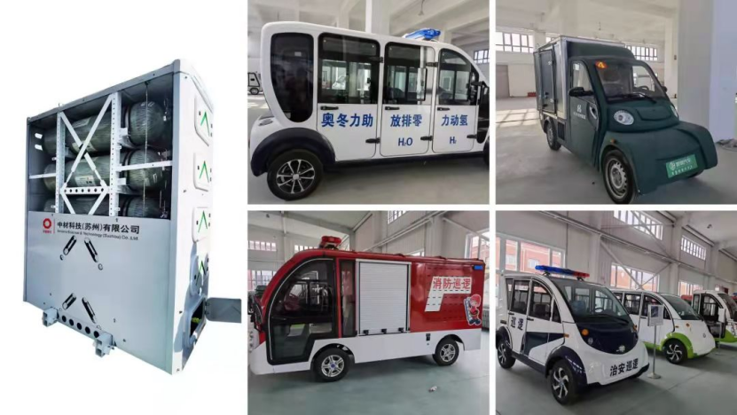 中材科技储氢气瓶的氢燃料电池汽车已陆续批量服务北京延庆和张家口两个赛区,助力2022冬奥会。其中送往北京延庆的首批46台氢能通勤大巴全部使用中材科技所属苏州有限生产的165L储氢气瓶组,设计续航里程可达630公里。