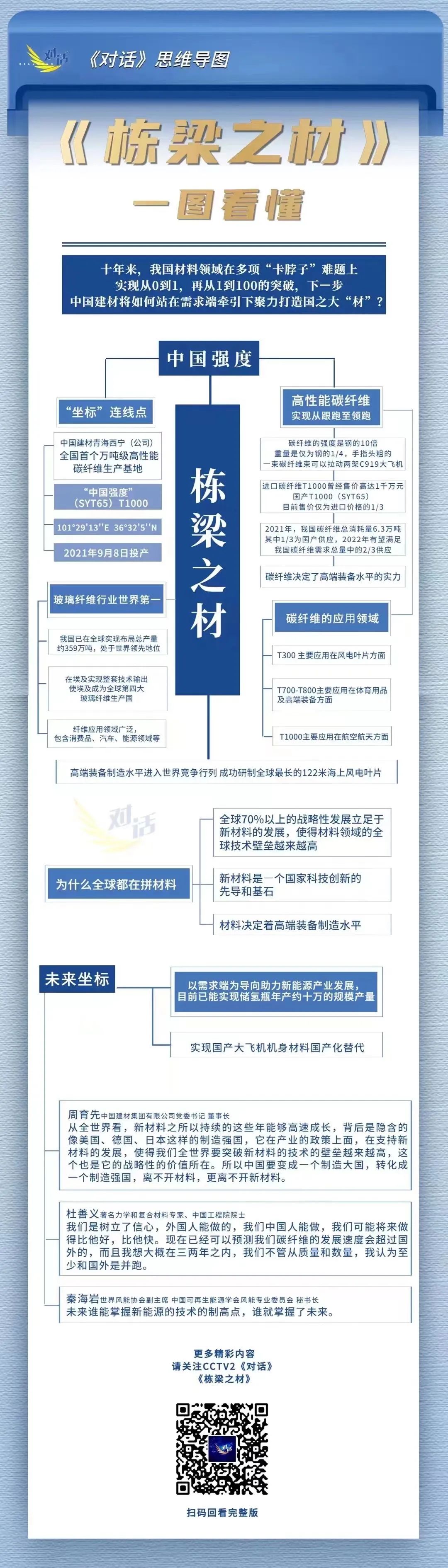 主持人:节目进行到这里,相信材料这两个字让所有的观众已经更多了一份了解和认识,常常会听到这样的说法,叫材料就是强国之基。周董您一直都在跟材料打交道,能不能告诉我们您对材料的认识?