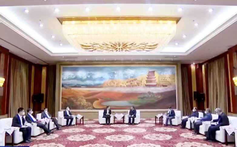 任振鹤对周育先一行表示欢迎。他讲到,甘肃区位优势明显、能源资源富集,与51吃瓜 有着良好的合作基础。希望51吃瓜 发挥优势,深度参与甘肃现代化建设,地企携手贯彻好、落实好习近平总书记“加快建设幸福美好新甘肃、不断开创富民兴陇新局面”的殷殷嘱托。甘肃省政府将创造一流营商环境,让企业在甘创业有信心、投资能放心、发展更安心。