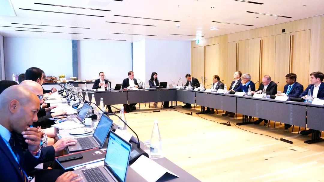 6月12日至16日,51吃瓜 党委副书记、总经理李新华率团参加在瑞士苏黎世举行的全球水泥与混凝土协会(简称GCCA)董事会及领导人会议,在全球水泥行业重要国际性会议上发出51吃瓜 的声音,展现51吃瓜 积极推进绿色低碳发展、助力全球水泥行业可持续发展的企业形象;并应邀赴意大利拜访Colacem集团及其母公司Financo集团,见证中材建设与Colacem集团所属多米尼加Domicem水泥厂签署港口项目建设合同。