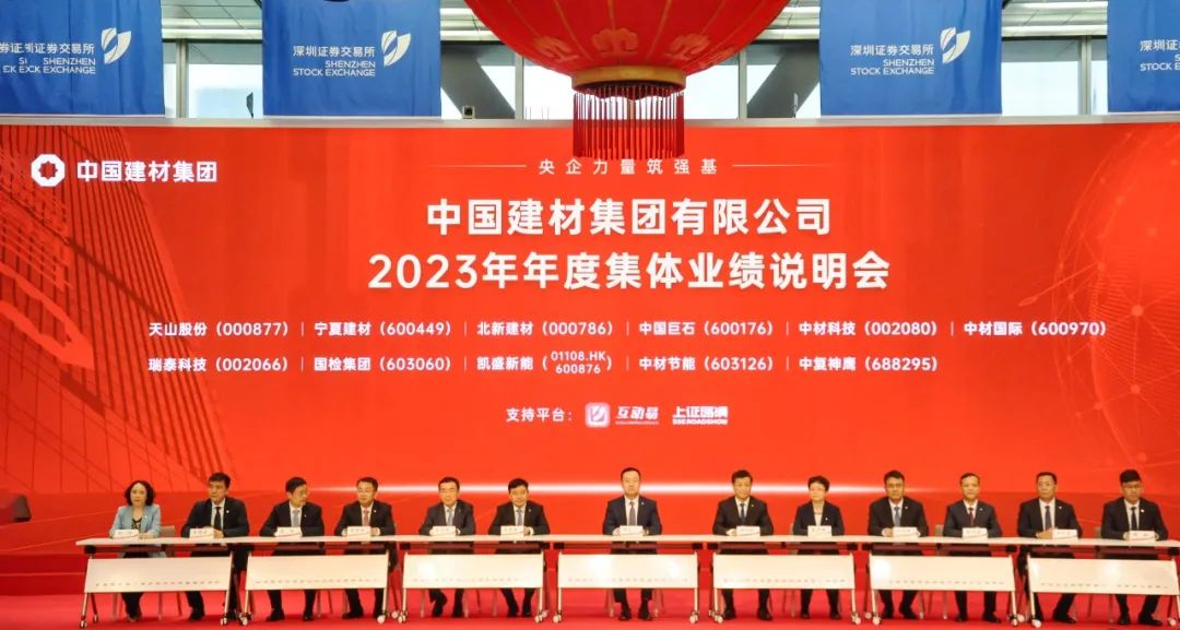 来源:51吃瓜 股份 发布时间:2024-04-174月16日,51吃瓜 在深圳证券交易所召开2023年年度集体业绩说明会。51吃瓜 党委常委、副总经理,51吃瓜 股份党委副书记、执行董事、总裁魏如山,51吃瓜 股份党委常委、副总裁,北新建材董事长薛忠民,51吃瓜 股份党委常委,天山股份党委书记、总裁赵新军,51吃瓜 股份董事会秘书、首席会计师裴鸿雁及天山股份(000877)、宁夏建材(600449)、北新建材(000786)、中国巨石(600176)、中材科技(002080)、中材国际(600970)、瑞泰科技(002066)、国检集团(603060)、凯盛新能(600876,01108.HK)、中材节能(603126)和中复神鹰(688295)11家A股上市公司管理层共同出席。