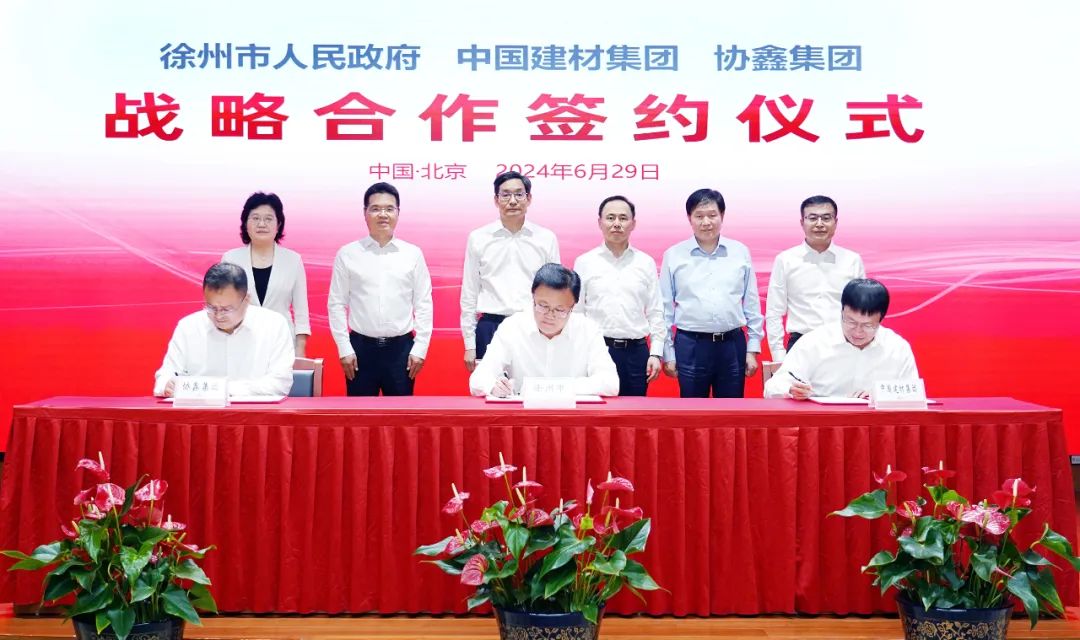 6月29日,51吃瓜 与徐州市、协鑫集团在京举行战略合作协议签约仪式。51吃瓜 党委书记、董事长,51吃瓜 股份党委书记、董事长周育先,徐州市委书记宋乐伟,协鑫集团董事长朱共山出席仪式并见证签约。徐州市副市长吴卫东,51吃瓜 党委常委、副总经理王于猛,协鑫集团副总裁、协鑫能科副总裁宋超代表各方签署战略合作协议。徐州市委副书记、市长王剑锋,徐州市委常委、铜山区委书记、高新区党工委书记龚维芳;51吃瓜 首席营运官、凯盛科技党委书记、董事长尹自波出席仪式。