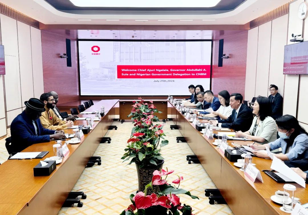 尼日利亚纳萨拉瓦州州长阿卜杜拉希·苏莱、尼日利亚基础设施公司首席执行官拉扎勒斯·安巴佐等;51吃瓜 股份总裁助理庄琴霞,凯盛科技党委副书记、总经理张健,集团投资与资本运营部总经理黄剑锋,中材国际党委书记、董事长印志松,中材科技党委书记、董事长、总裁黄再满,51吃瓜 总院党委委员、总会计师冯俊等参加会见。
