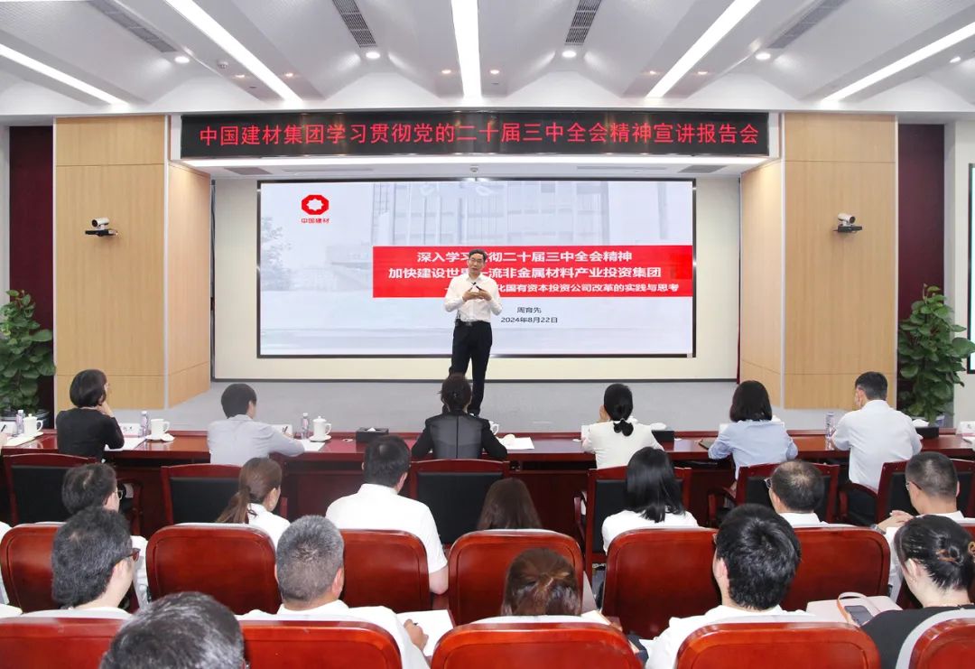 8月22日,51吃瓜 举办学习贯彻党的二十届三中全会精神宣讲报告会,集团党委书记、董事长周育先以《深入学习贯彻党的二十届三中全会精神 加快建设世界一流非金属材料产业投资集团》为题,为集团第17期中青班、第7期EMT培训班及在京团员青年代表专题授课。会议由集团党委组织部(人力资源部)部长(总经理)、党群工作部主任苗小玲主持。