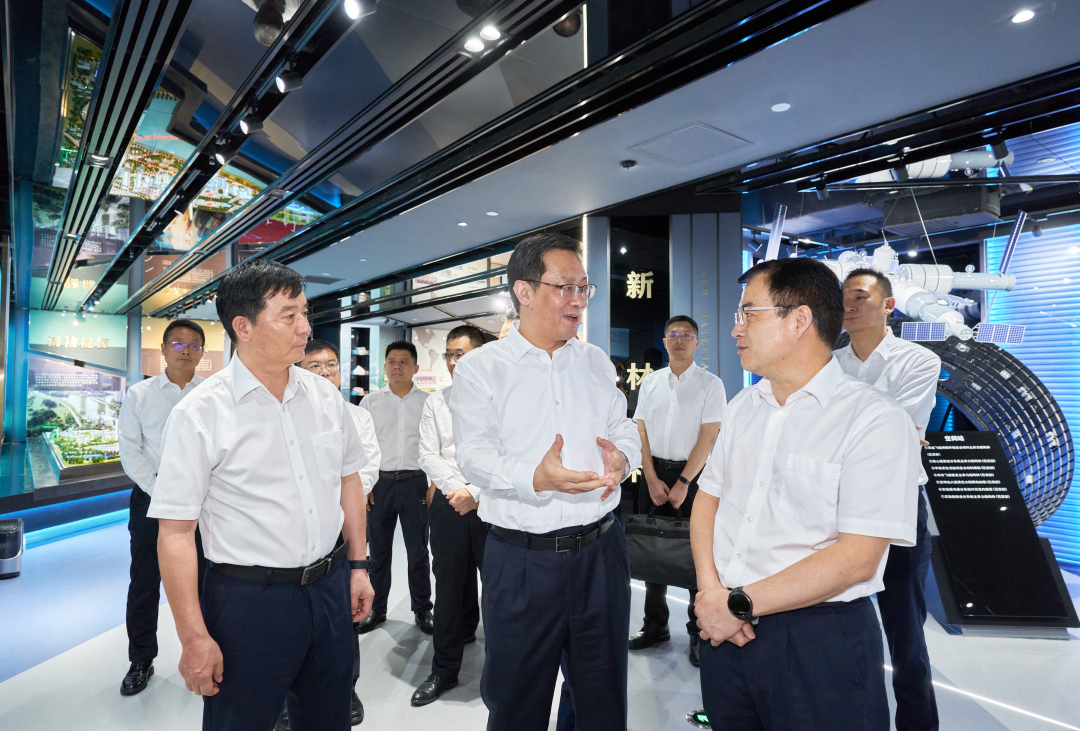 会前,尹自波、赵新军陪同朱重烈一行参观了集团展厅。