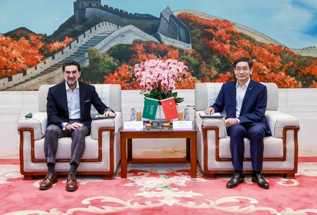 周育先会见沙特阿美董事长、沙特公共投资基金董事总经理亚瑟·卢马延阁下一行