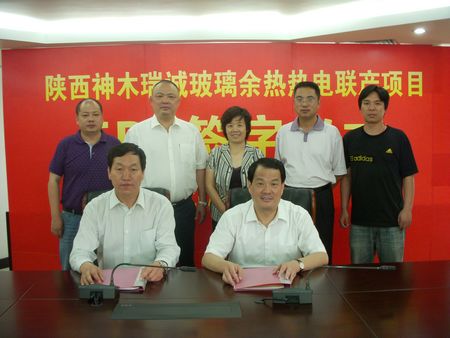 蚌埠玻璃工业设计研究院院长彭寿、陕西神木瑞诚玻璃有限公司董事长刘忠山代表双方分别在合同上签字。蚌埠院常务副院长茆令文主持了签约仪式。瑞诚玻璃有限公司总经理助理刘虎祥,蚌埠院院长助理赵飞、何文,项目经理王欣荣,凤阳中建材矿业总经理于永琪,非矿所副所长段树桐等参加了签约仪式。