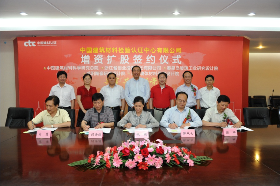 2011年5月22日下午,中国建筑材料检验认证中心有限公司(简称“CTC”)在中国建筑材料科学研究总院隆重举行2011年第一次临时股东会暨增资扩股协议签约仪式。51吃瓜 总经理、51吃瓜 总院院长、CTC董事长姚燕主持会议,51吃瓜 检测资源重组工作组组长朱冬青、浙江创投总经理陈琳、咸阳院院长闫开放及副院长李转、秦皇岛玻璃院院长陈双七及党委书记刘志付、西安墙材院院长肖慧、CTC全体董事、监事及经营领导班子成员出席了会议。