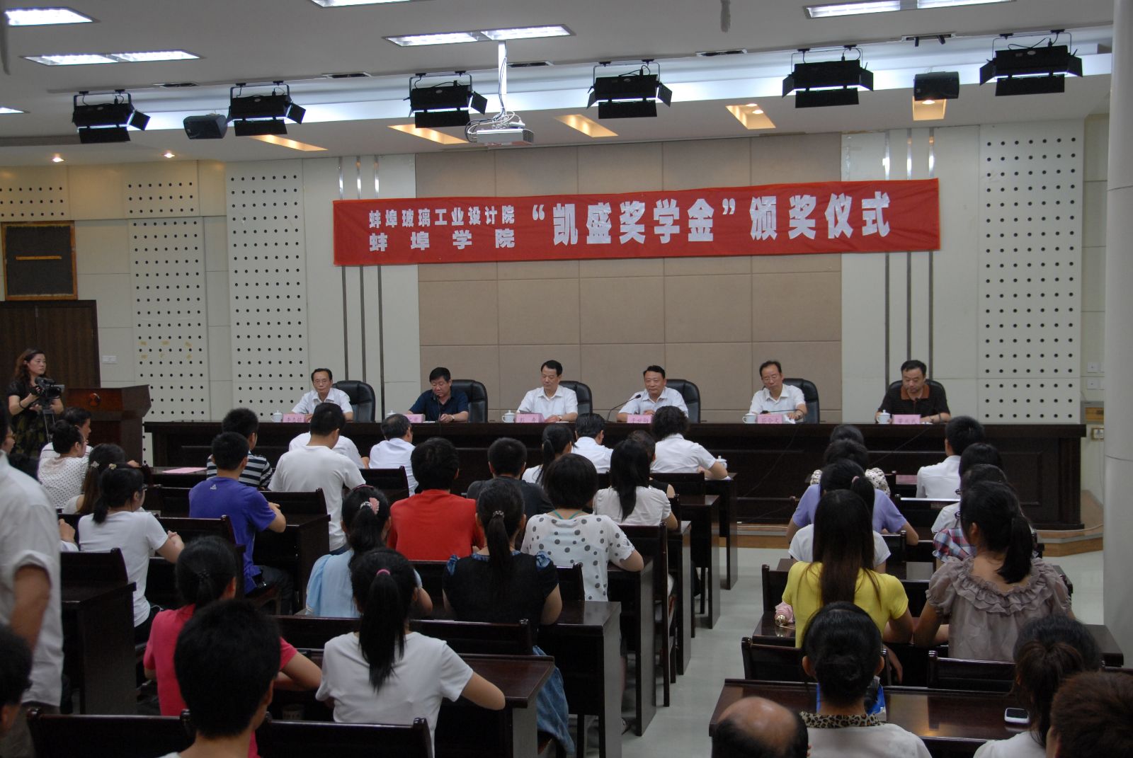 蚌埠院出资设立凯盛奖学金,是为了更好地支持蚌埠学院培养人才,激励青年学生努力学习、奋发成才,深入推进和探索校企合作、产学研结合的创新模式。凯盛奖学金管理委员会开展了首届凯盛奖学金评选,刘赛赛、李丹等20名专业成绩和综合素质优秀的同学获此殊荣。