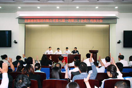 会上,北新集团总经理陶铮作了题为《坚定信心 锐意进取 努力开创新常态下企业改革发展新局面》的报告,回顾和总结了过去的工作,对下一步的工作特别是做优做强房屋业务、推进房屋事业蓬勃发展提出了具体的措施。北新集团党委副书记、纪委书记赵雁鸣代表公司第六届工会委员会向大会作了题为《 围绕中心 凝心聚力 为全面推进公司改革创新再立新功》的工作报告,回顾和总结了五年来公司工会工作,提出了当前和今后五年公司工会工作重点。北新集团总会计师李苑作《财务工作报告》。