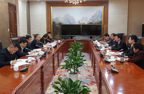 海螺集团副总经理何承发、李群峰,水泥装备成套部部长许越、建材设计院副院长徐刚,合肥院粉体公司总经理王学敏等参加会谈。