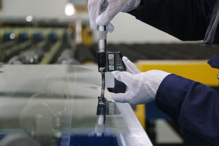 蚌埠院凭借具有国际先进水平的成套技术及装备率先在国内成功拉引出0.25毫米、0.2毫米的超薄电子玻璃,实现了我国浮法玻璃由传统领域向电子信息显示领域的完美跨越,打破了国外对电子信息显示行业上游关键原材料的长期垄断。在此基础上,以抢占行业制高点为目标、以引领行业技术进步为己任,蚌埠院继续发扬团结拼搏、攻坚克难的精神,开展多项课题攻关研究,充分做好技术储备工作,为玻璃进一步拉薄打下坚实的基础。经过大量精心而细致的准备,通过多天的技术调试和生产准备,0.15毫米超薄浮法电子玻璃成功下线,经检验,产品厚薄差等质检指标均已达标,标志着蚌埠院再一次站在了玻璃行业的制高点上。