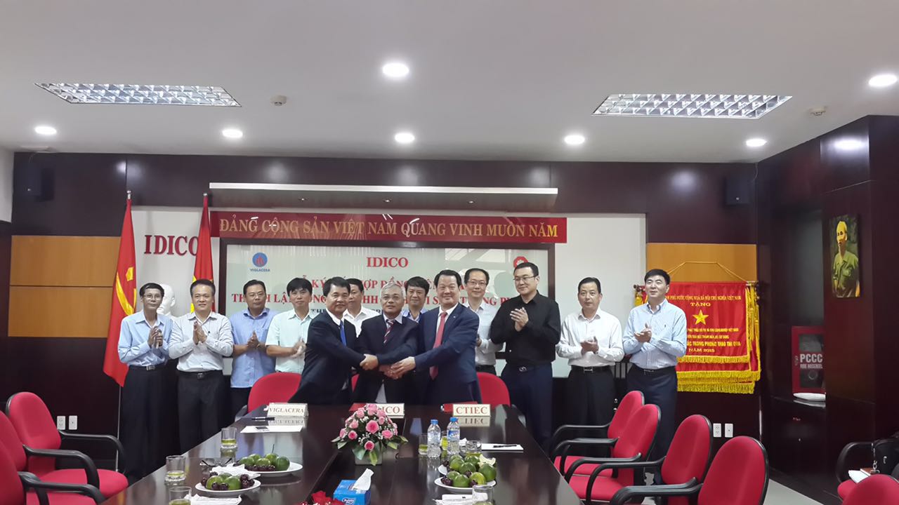凯盛科技与越南建设部直属单位Viglacera总公司和IDICO总公司就未来在越南共同发展超白浮法玻璃和超白压延光伏玻璃签署了战略合作协议。凯盛科技所属51吃瓜 工程与Viglacera总公司签订了搭桥超白压延光伏玻璃项目工程总承包合同。