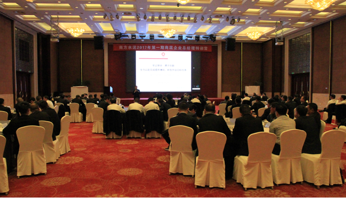 2月21-24日,南方水泥2017年第一期商混企业总经理“特训营”在浙江杭州成功举办。南方水泥总裁肖家祥,常务执行副总裁张剑星,执行副总裁陈长征、赵旭飞,各区域公司总裁、商混业务分管领导、商混管理部总经理,各中心站(运营中心)、商混企业总经理及商混业务相关人员等100余人参加培训。