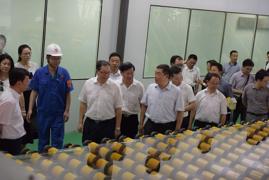 在电子信息显示超薄玻璃基板生产线,陈刚从超薄触控玻璃的工艺流程、种类特性和应用市场等各个方面提出相应问题,对蚌埠院自主研发的世界最薄0.15毫米超薄触控玻璃印象深刻,高度赞扬了蚌埠院的全产业链和高端技术水平。在浮法玻璃新技术国家重点实验室,陈刚听取了蚌埠院历史沿革、科研开发、工程服务、新型材料、市场分布等情况介绍,对蚌埠院的跨越发展和领跑作用给予充分肯定。代表团一行还仔细参观了重点实验室检测设备,了解了蚌埠院的高端人才、高端成果、高端产品,当得知空心玻璃微珠在国家航空和深海探测的高端应用后,陈刚感慨道:“凯盛玻璃产业方兴未艾!”