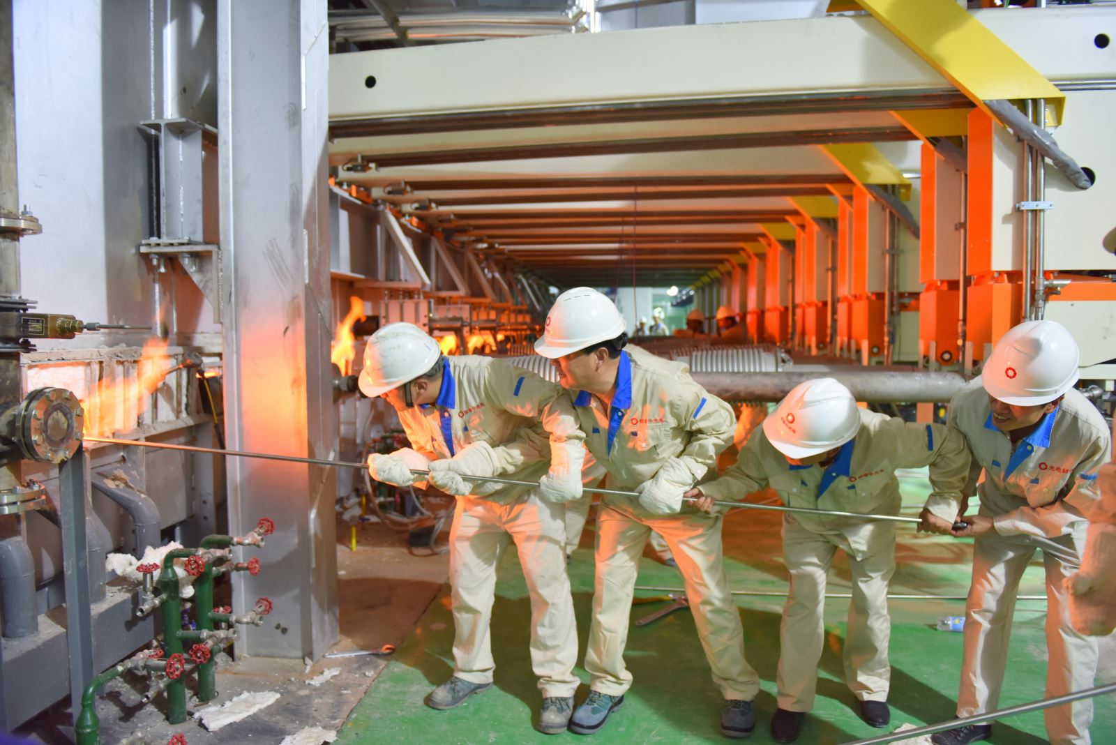 8月26日,中国首条8.5代TFT-LCD玻璃基板生产线在蚌埠一次性引板成功,项目也由烤窑升温、联动调试阶段正式转入试生产阶段,为产品批量下线奠定了坚实基础。凯盛科技董事长、蚌埠院院长、蚌埠中光电董事长彭寿深入一线,全程指导并参加生产线引板工作。