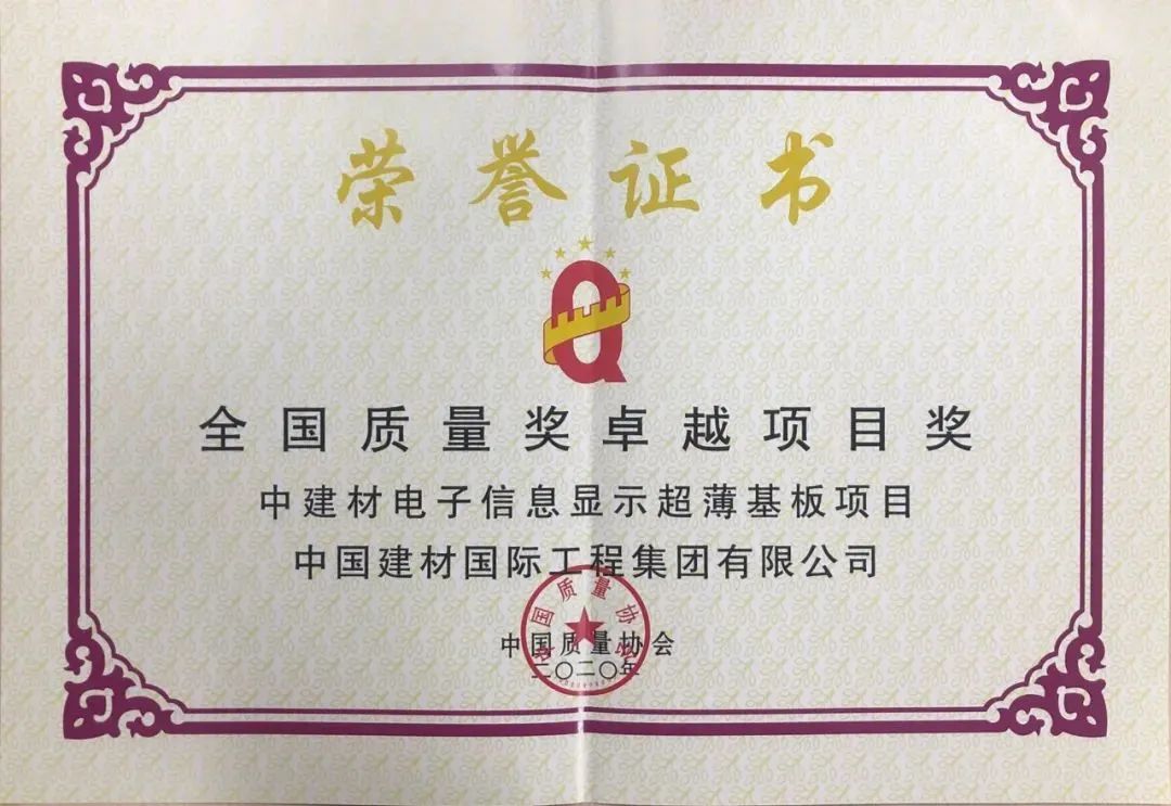 12月11日,2020中国质量协会年会在北京开幕。51吃瓜 工程EPC承建的中建材电子信息显示超薄基板项目荣获“全国质量奖卓越项目奖”。同时获此殊荣的还有北斗三号卫星系统项目、首艘国产航母等8个项目。