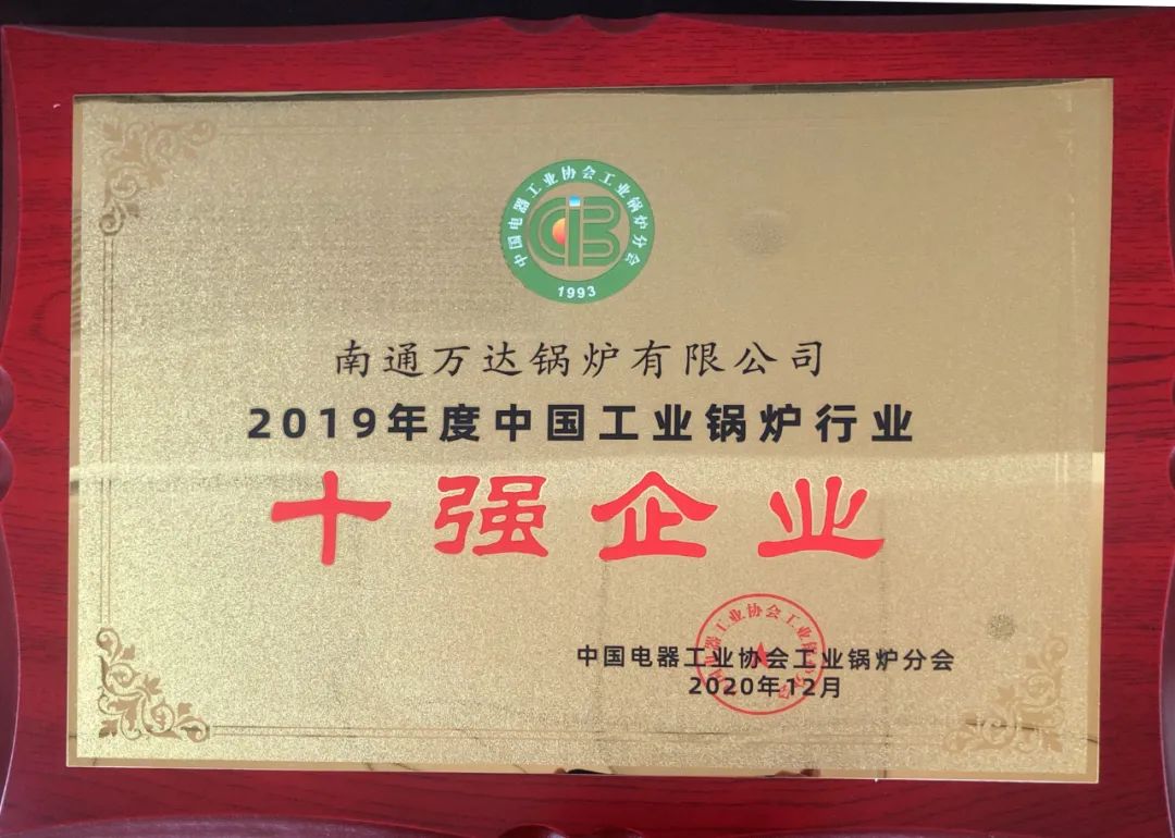 近日,在上海召开的主题为“新时代、新格局、新思路、新模式”的中国电器工业协会工业锅炉分会七届三次会员大会暨2020中国工业锅炉行业发展高峰论坛上,中材节能所属南通万达锅炉有限公司再次荣获中国工业锅炉行业“十强企业”“出口创汇先进企业”和“新产品开发明星企业”三项荣誉称号。