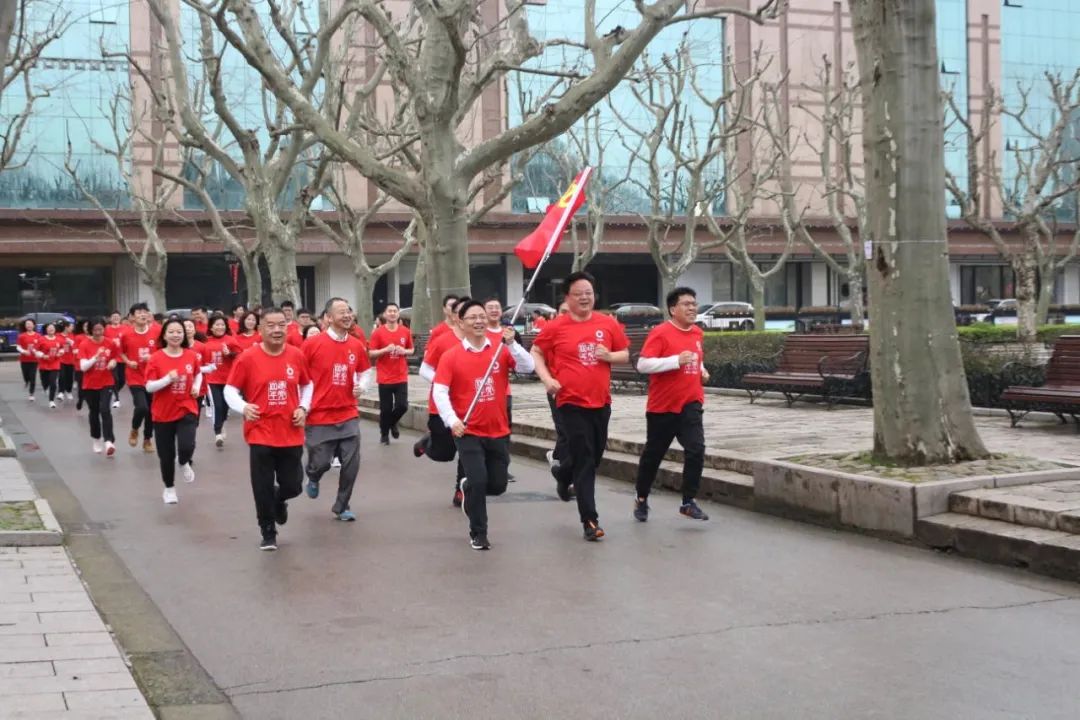 随后,全体人员从中共二大会址纪念馆行至复兴公园进行健康跑,跑步全程7.1km,并组成“7.1”和“100”字样进行拍摄留念,以此表达对党的美好祝福和热爱之情。