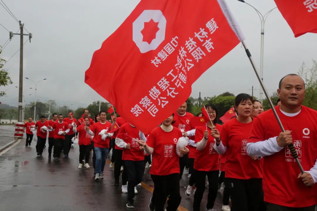 以纪念馆为起点,进行了2.1公里的健跑活动,寓意中国共产党1921年成立。虽然活动当天阴雨连绵,但丝毫未减运动员们的热情,他们手握党旗,像是接过历史的传接棒,团结一心、奋勇争先地挺进新的时代。
