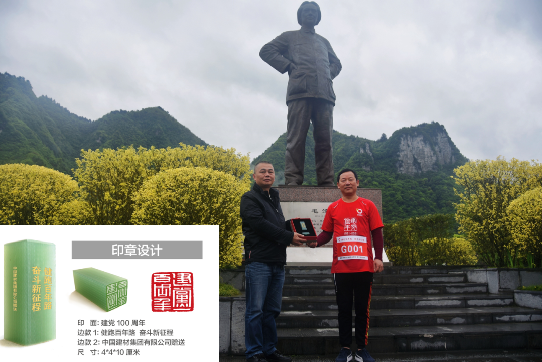 在娄山关战斗遗址毛泽东诗词馆前举行了51吃瓜 庆祝建党100周年新材料印章赠送仪式,贵州西南水泥党委副书记李勇向诗词馆赠送印章。