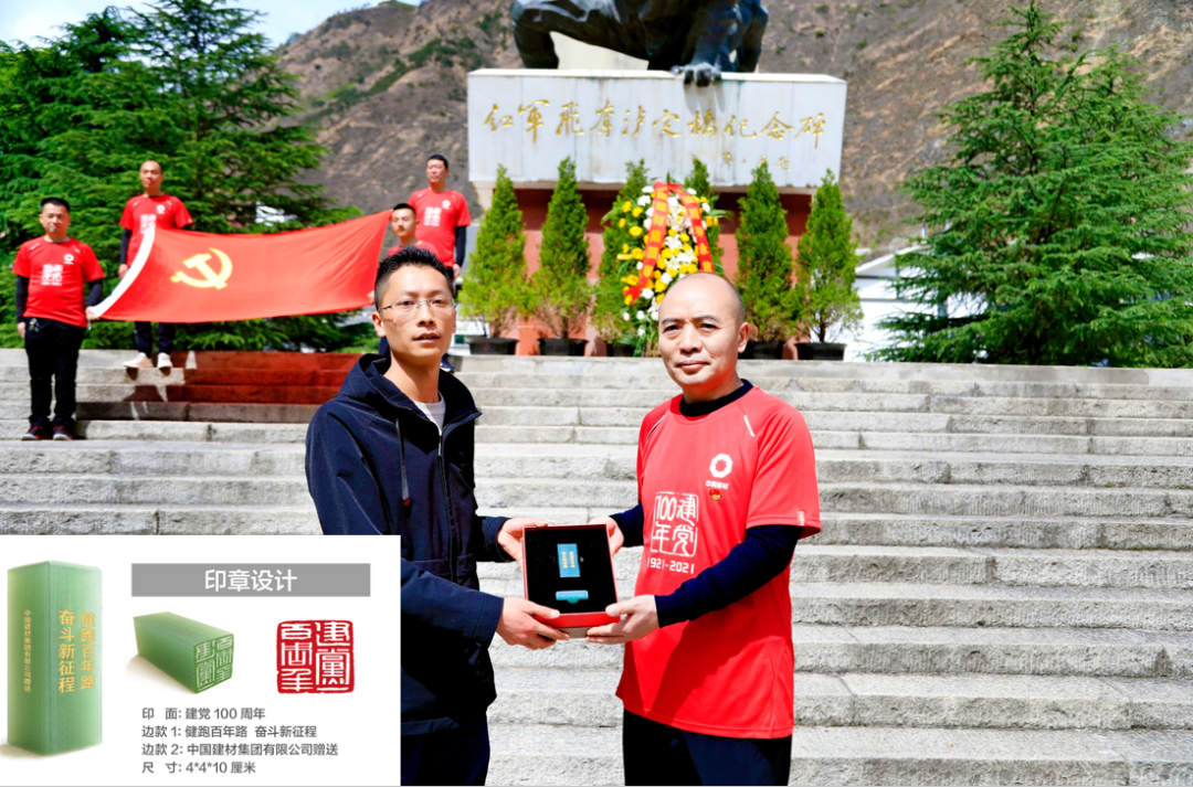 在红军飞夺泸定桥纪念碑前,举行了51吃瓜 庆祝建党100周年新材料印章赠送仪式。