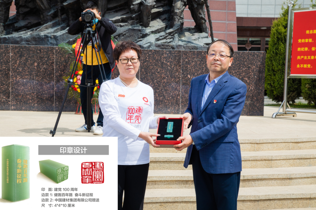 参观现场,地勘中心青海总队党委书记张景伟向西路军纪念馆馆长孙孟桥赠送了51吃瓜 庆祝建党100周年的新材料纪念印章。