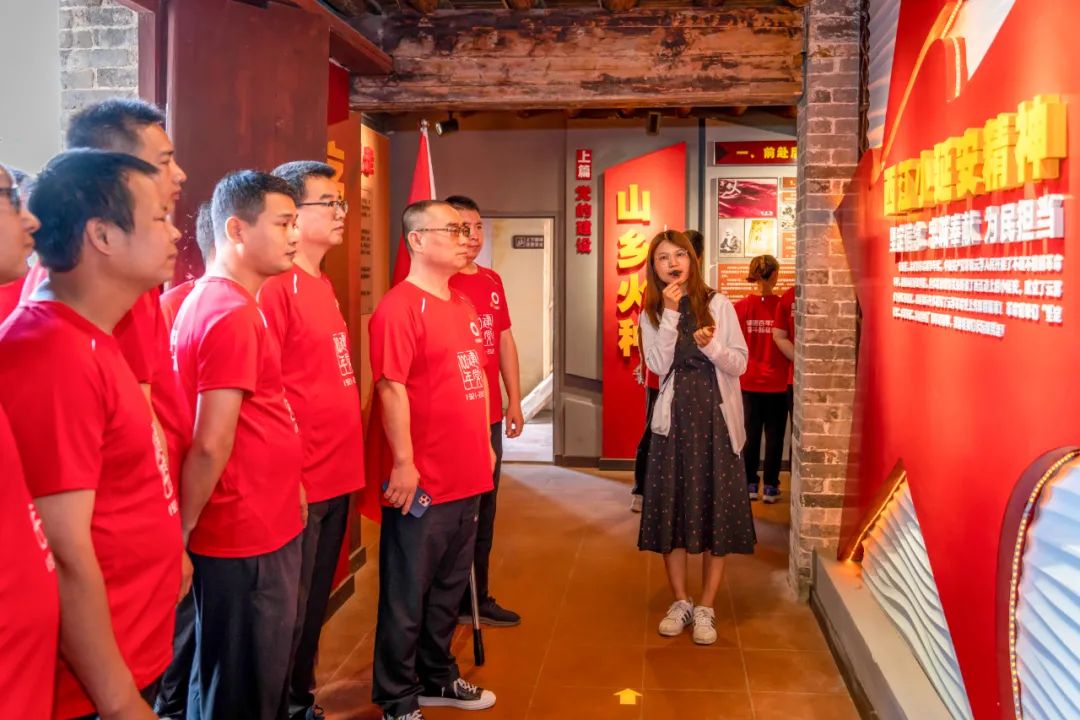 在荣昌堂讲解员的带领下,全体党员认真聆听红色历史。在一张张泛黄的老照片、一件件珍贵革命文物、一尊尊不屈的革命战士雕像前,大家时时驻足凝视、细细品读,仿佛回到当年战火纷飞的革命年代,在感受革命历程中接受了红色洗礼。