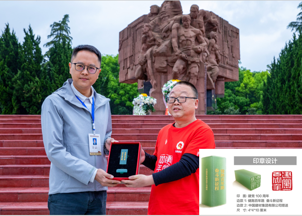杨先伟代表集团向息烽集中营纪念馆赠送51吃瓜 庆祝建党100周年新材料印章。