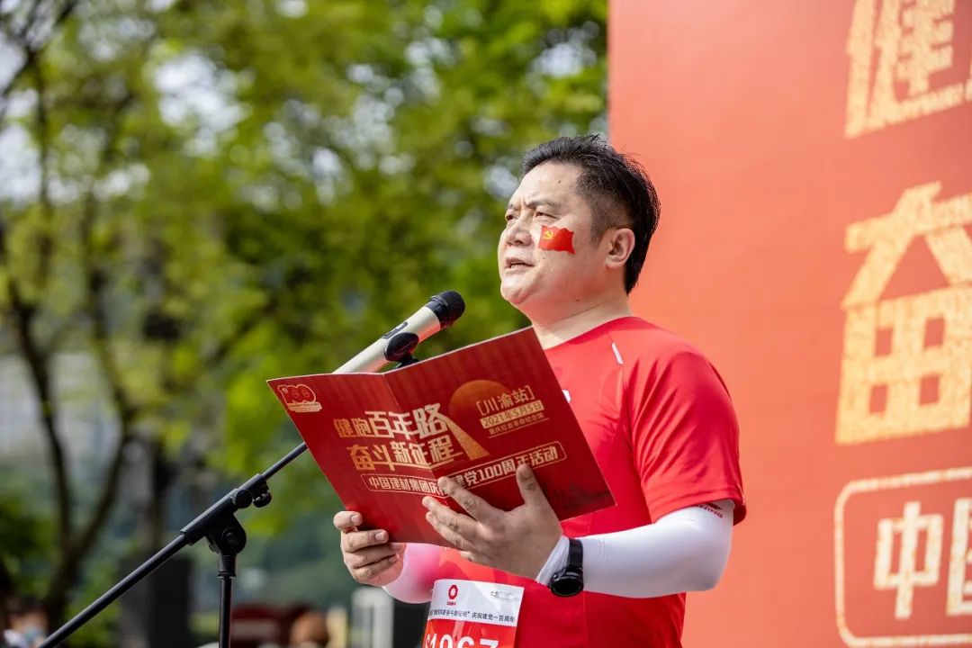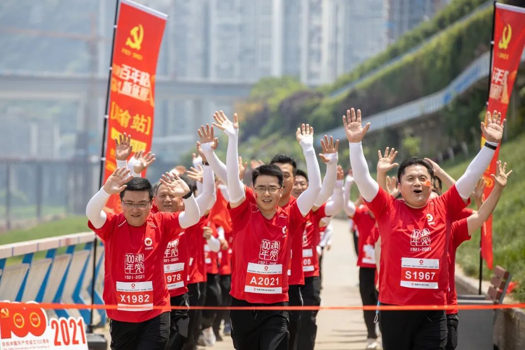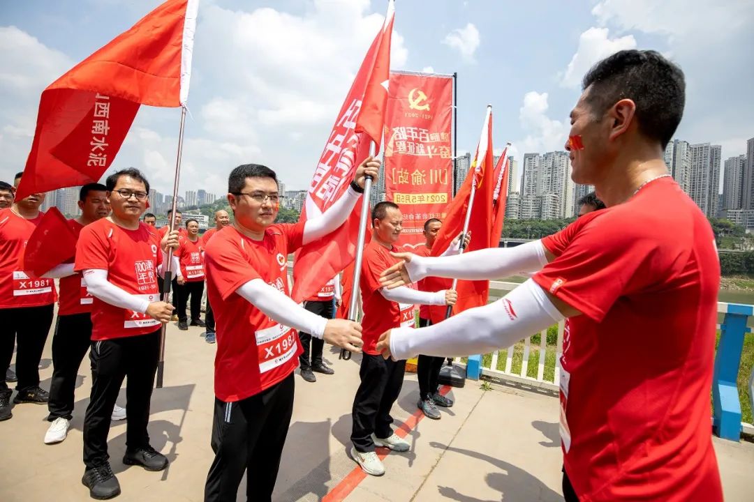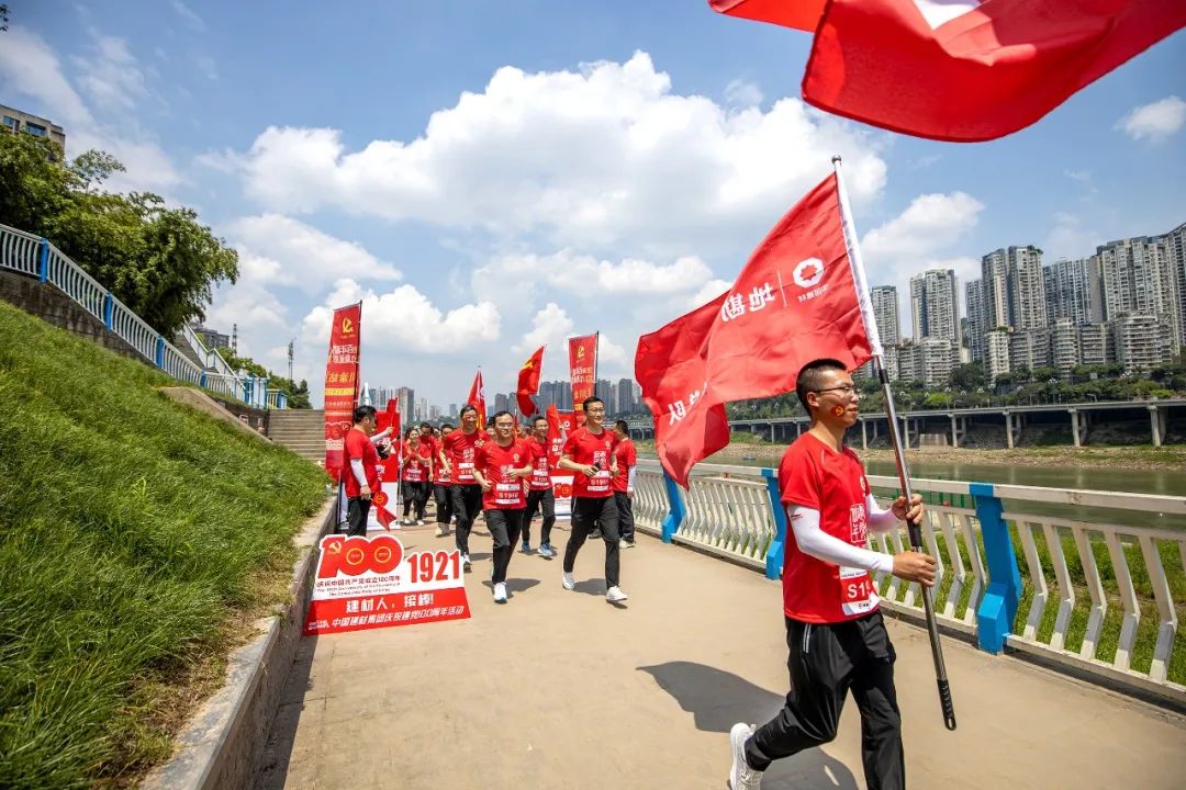 健跑在11点06分正式开始,以1921年、1949年、1978年、2012年和2021年5个年份标识将健跑路线分为4段,四川总队从“1921年”跑向“1949年”,在“1949年”处,将党旗交给安县中联,安县中联从“1949年”奔向“1978年”,重庆秀山接棒,从“1978年”向“2012年”冲去,最后在“2012年”处,三家单位100名选手会师后,共同跨越“2021年”向美好的未来冲刺,寓意一代又一代的51吃瓜 人团结协作,为实现中华民族伟大复兴的中国梦接续奋斗!