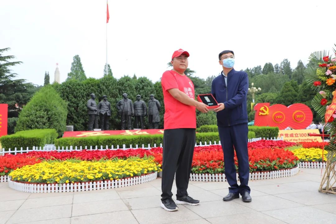 活动中,韩正琦向西柏坡纪念馆赠送了51吃瓜 庆祝建党100周年新材料印章。