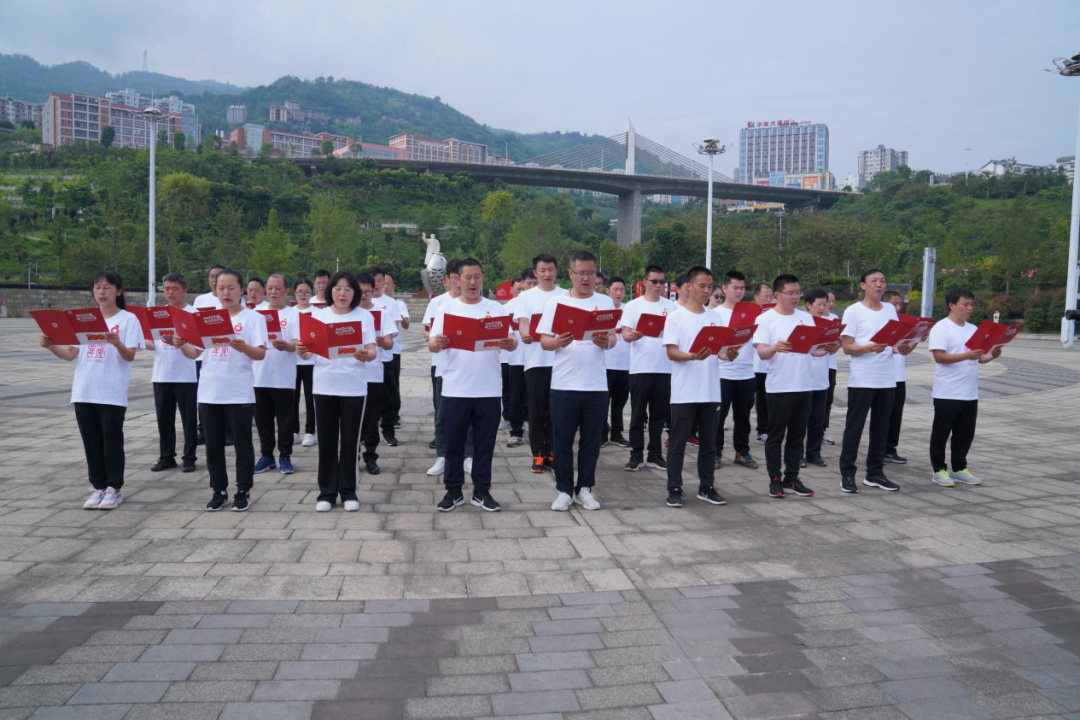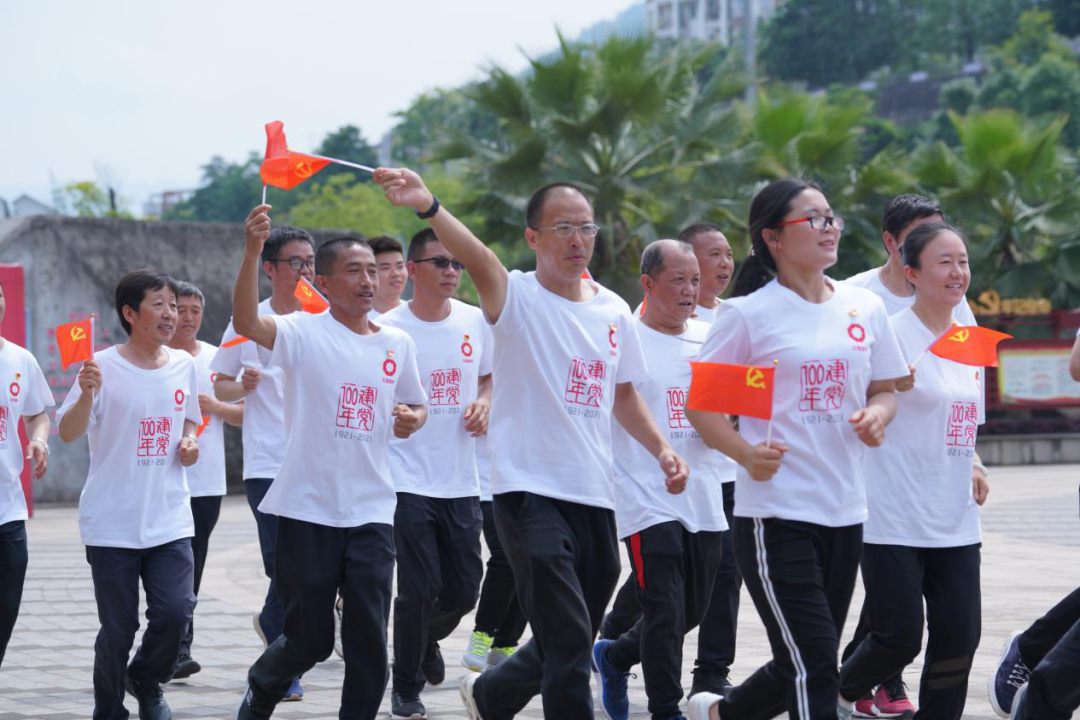 6月10日,51吃瓜 “健跑百年路 奋斗新征程”庆祝建党100周年第83站活动在51吃瓜 定点帮扶县云南省昭通市绥江县人民广场成功举行。集团所属曲靖市宣威宇恒水泥公司、云南远东亚鑫水泥公司两家成员企业共计45名党员职工参加活动。