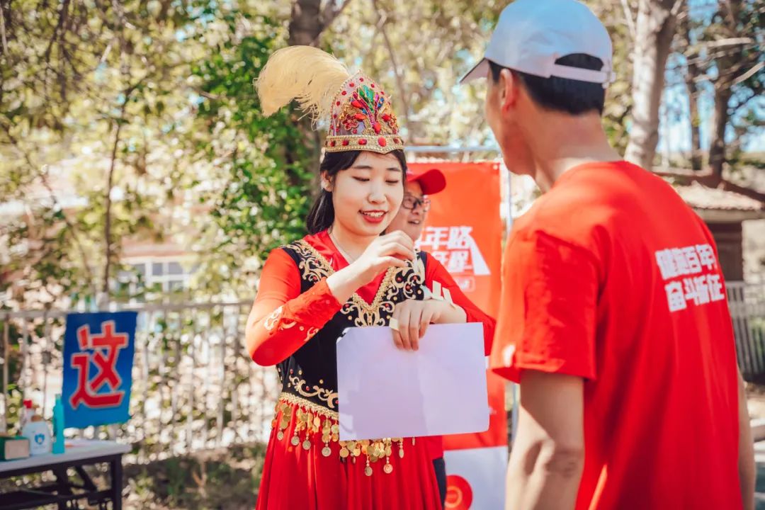 本次健跑活动共100人参与,寓意“建党100周年”。共设两个里程,一是全程跑5.4公里,以“5.4”里程数,纪念1954年成立的新疆生产建设兵团;二是迷你跑2.1公里,寓意着中国共产党1921年诞生。全程分为5个赛段,起点是1921年7月,代表中国共产党成立之时;第一赛段是1927年8月,代表南昌起义中国共产党独立创建人民军队并领导革命;第二赛段是1945年9月,代表抗日战争取得胜利;第三赛段是1949年10月,代表中华人民共和国成立之时;第四赛段是1978年12月,代表党的十一届三中全会开启改革开放征程;第五赛段即终点是2021年7月,代表中国共产党成立100周年。每一赛段设“党史移动小课堂”,健跑者跑到答题点后由工作人员就党史知识进行随机问答,寓教于乐。