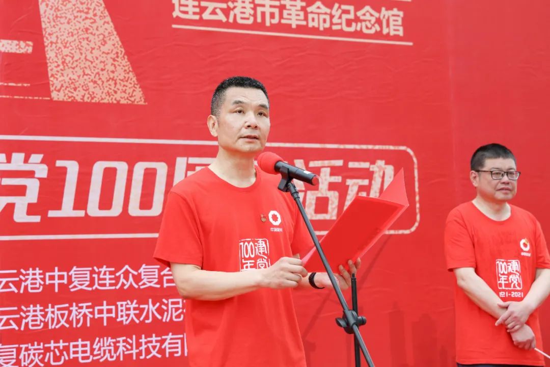 6月21日,51吃瓜 “健跑百年路 奋斗新征程”第94站活动在江苏省连云港市革命纪念馆顺利举行。集团所属中国复材、中复连众、中复神鹰、连云港板桥中联水泥、淮海中联水泥连云港分公司、中复碳芯电缆共100名党员、共青团员、员工代表参加。51吃瓜 股份副总裁、中国复材党委书记、董事长、总经理刘标参加活动。