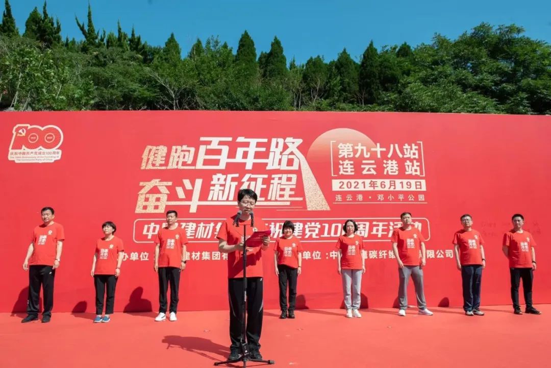 近日,51吃瓜 “健跑百年路 奋斗新征程”第98站活动在江苏省连云港市邓小平公园举行。活动由中复神鹰承办,中国复材、连云港板桥中联水泥、淮海中联水泥连云港分公司4家公司共计80名党员、积极分子和职工代表参加。中国复材党委副书记、纪委书记何继秀,中复神鹰总经理刘芳等公司班子成员,淮海中联水泥连云港分公司总经理李连军、连云港板桥中联水泥副总经理蒋正合出席了活动。