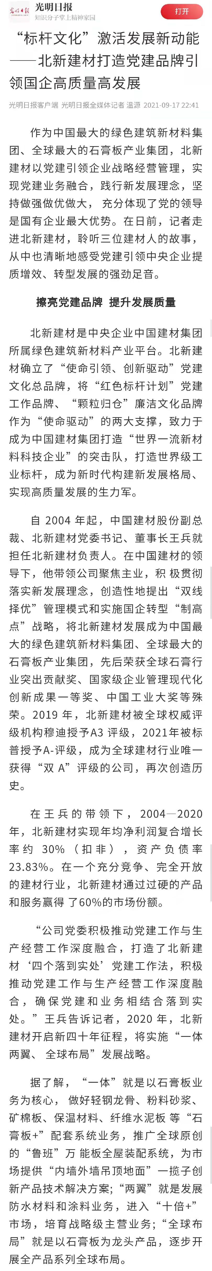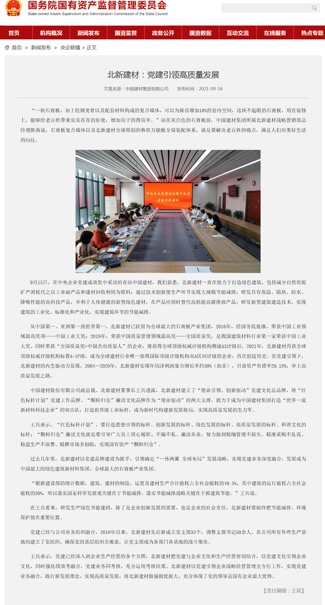 媒体走进中建材 | 高质量党建引领高质量发展典型宣传国资委组织媒体走进北新建材