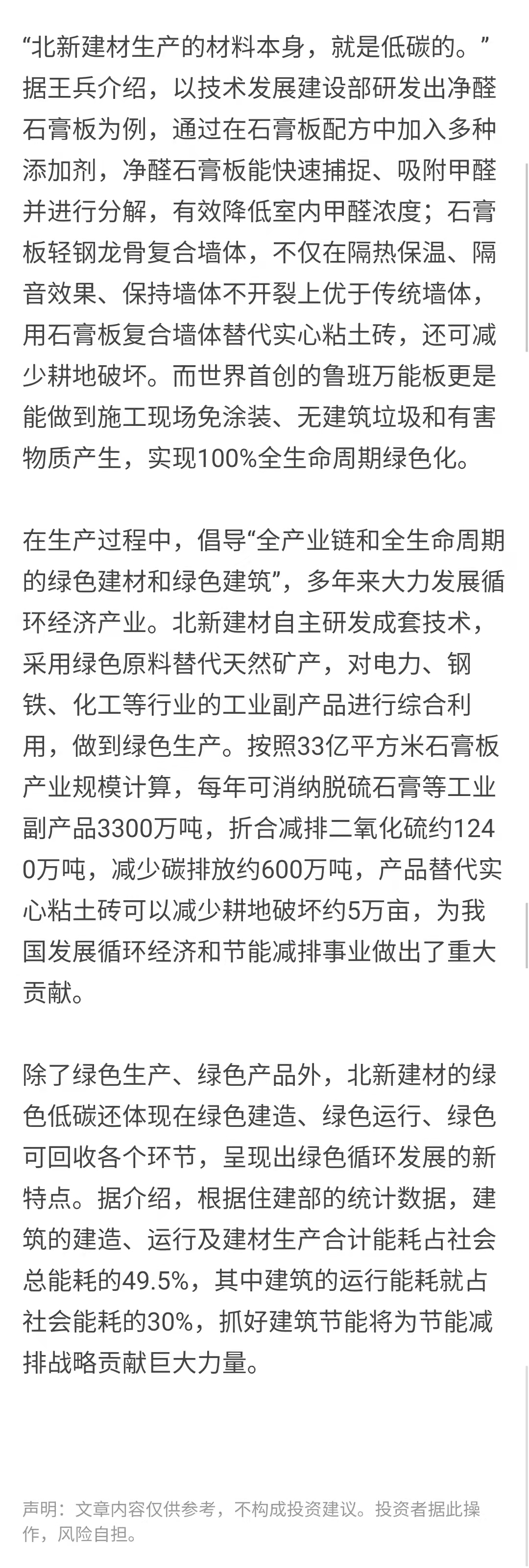一是围绕国家战略和民生工程。建筑、建材、房地产行业产业链的能耗占全社会能耗的近一半,对此北新建材遵循51吃瓜 “善用资源 服务建设”理念,积极践行生态文明、循环经济、“双碳”战略等国家战略,针对产业链上碳排放高的环节进行研发和开展业务。围绕人民对美好生活的向往,北新建材实施“一体两翼、全球布局”发展战略,除了巩固主营业务石膏板,还发展防水材料和涂料两个业务领域,为与人民生活息息相关的房屋裂缝、漏水、甲醛污染等问题提供解决方案。