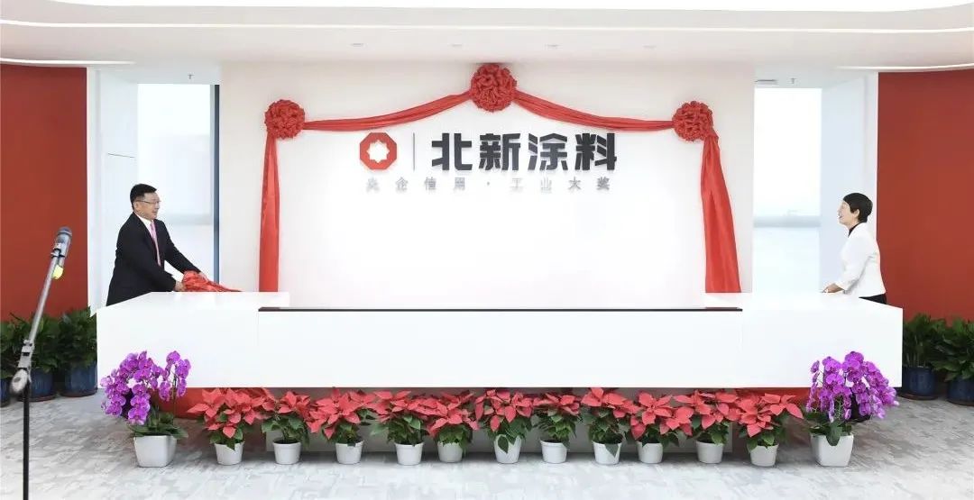 中国涂料工业协会会长孙莲英、北新建材董事长王兵为北新涂料有限公司揭牌。