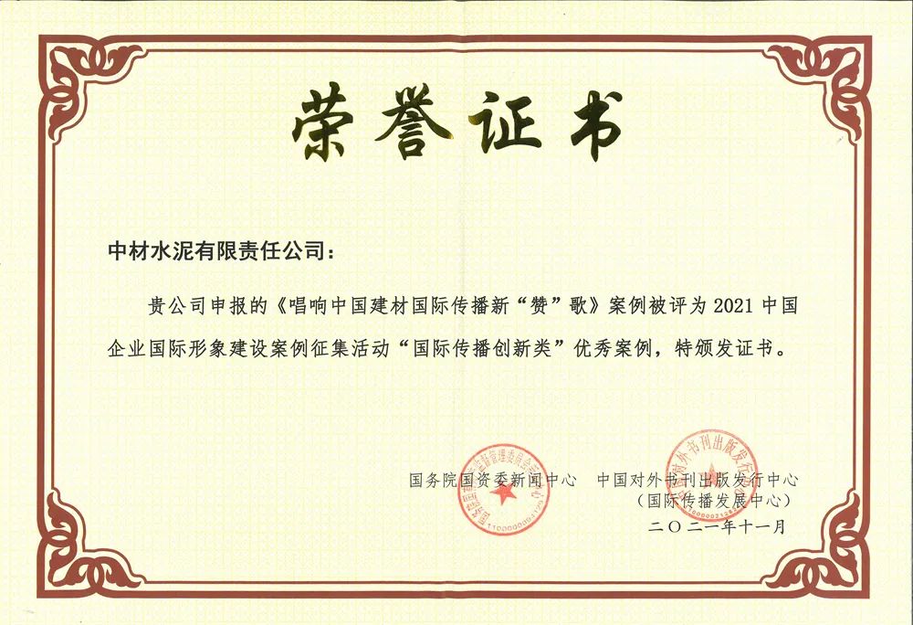 来源:中材水泥 发布时间:2021-12-1012月6日,以“推进可持续发展 共建美好世界”为主题,由中央宣传部、国务院国资委、全国工商联指导,中国外文局主办,中国对外书刊出版发行中心(国际传播发展中心)承办的“2021·中国企业全球形象高峰论坛”以线上线下相结合方式在北京举办。