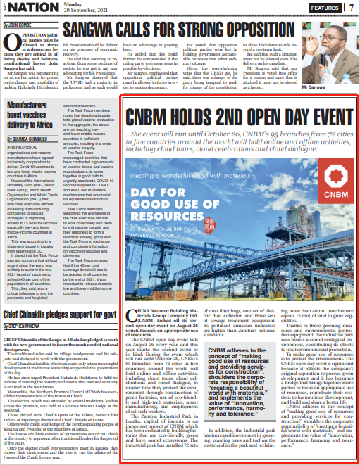 与赞比亚时报、每日邮报、民族日报、卢萨卡时报、国家广播公司等多家当地主流友好媒体一道,加强在选题策划、合作报道等方面的沟通,设置关键议题,抓住重要时间节点,持续推出了一批宣传中非合作共赢理念,提升企业正面形象的专题报道,扩大知华友华的媒体“朋友圈”,为深化企业属地化经营,提升51吃瓜 品牌海外传播声量赋能助力。
