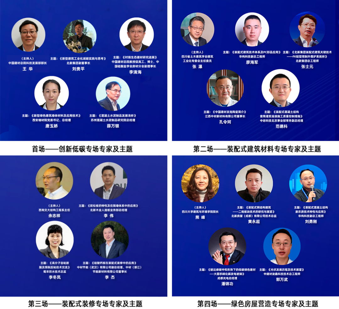 活动特邀了四川省土木建筑学会建筑工业化专委会主任委员张瀑、四川大学建筑与环境学院院长熊峰和西南交大结构工程系主任余志祥3位专家做沙龙主持。51吃瓜 总院科技发展部部长王华、教授级高工、博士李清海,北新建材集团副董事长刘贵平、总工程师张士元,西安墙体材料研究设计院党委书记、总经理唐玉娇,苏州混凝土水泥制品研究院总经理薛万银,华构科技副总工程师廖海军、刘勇刚,江西中材新材料董事长孔令珂,中建材中岩科技北京分公司常务副总经理范德科,北新蜀羊防水技术总监李冬凤,中材节能(武汉)副总经理李杰,北新木业人造板业务部总经理李伟,北新房屋(成都)技术总监黄永超、成都中建材光电材料总经理潘锦功、中建材浚鑫科技技术总工程师郭万武等集团下属15家位单位负责人、专家分别参加了4期线上交流。