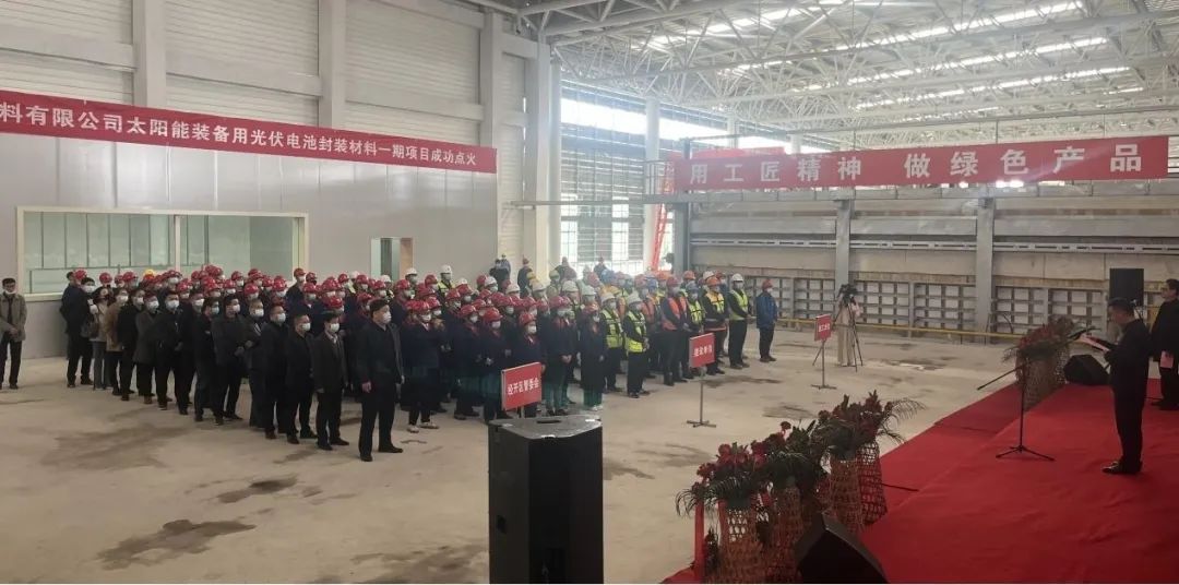桐城新能源1200t/d一窑八线太阳能封装材料生产线点火