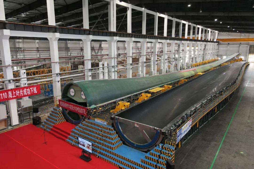 5月7日,运达股份YD110大型海上风电叶片在中复连众成功下线。该叶片由运达股份与中复连众合作而成,是国内已下线的最长风电叶片。YD110叶片集成融合了高强预埋叶根、2.0防雷系统和拉挤碳板主梁等技术,采用同步预制工艺,进一步提升了叶片的可靠性、稳定性。该叶片将由依托中复连众运营的江苏省海上风电叶片设计与制造技术重点实验室进行静载和疲劳检测。中复连众将不断完善科技创新体制机制,加强产品全生命周期全过程质量控制,加速推进大型风电叶片基地建设,不断为客户提供优质的产品和服务。值得一提的是,该型号叶片配套的风电机组年发电量可满足约5.6万个家庭一年用电,每年减少5.6万吨二氧化碳排放,是实现“碳达峰碳中和”目标的助推器。