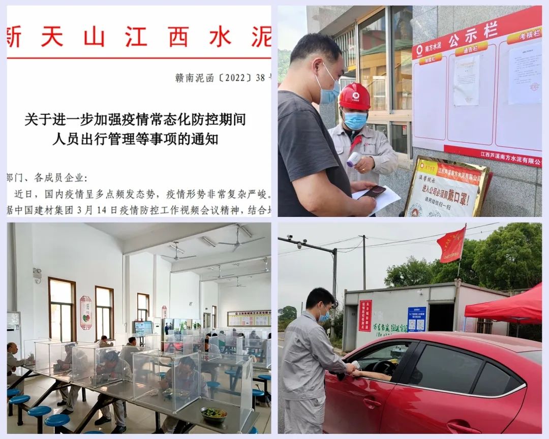 科学部署。江西水泥第一时间下发《关于进一步加强疫情常态化防控期间人员出行管理等事项的通知》,不定期抽查成员企业班子在岗和疫情防控执行情况。坚守防线。区域公司本部严格落实南昌市红谷滩区防疫要求,组织全员配合开展了24轮核酸筛查,每日“四验一戴”,静态管理累计10天;成员企业对进厂员工、外来人员严格实行全员登记、体温测量、“双码核验”,确保防疫生产两不误。全面预防。每日进行全面消杀,采取分隔、错峰用餐等形式科学就餐,配足配齐防疫物资、设置临时隔离点,防患于未然。志愿当担。各成员企业、员工积极响应当地、企业要求,开展系列志愿防疫活动,彰显央企当担。