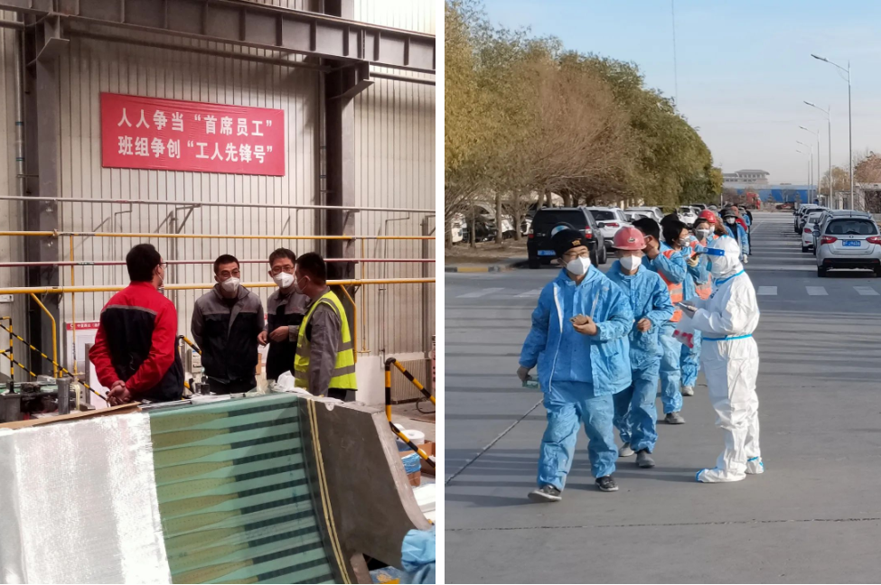 在酒泉公司,为保障驻厂职工就餐条件,安排专人协助食堂工作人员做好就餐准备和环境卫生工作;为确保核酸检测工作高效推进,专人值守在核酸采样点,协助采样人员维护现场秩序,做好员工扫码登记等工作。连云港管罐工厂用心用情,把防疫工作做实做细。没有宿舍,就安排大家住在会议室、办公室和更衣室;因条件有限,为了得到大家的理解,就面对面地谈心、做好思想工作。